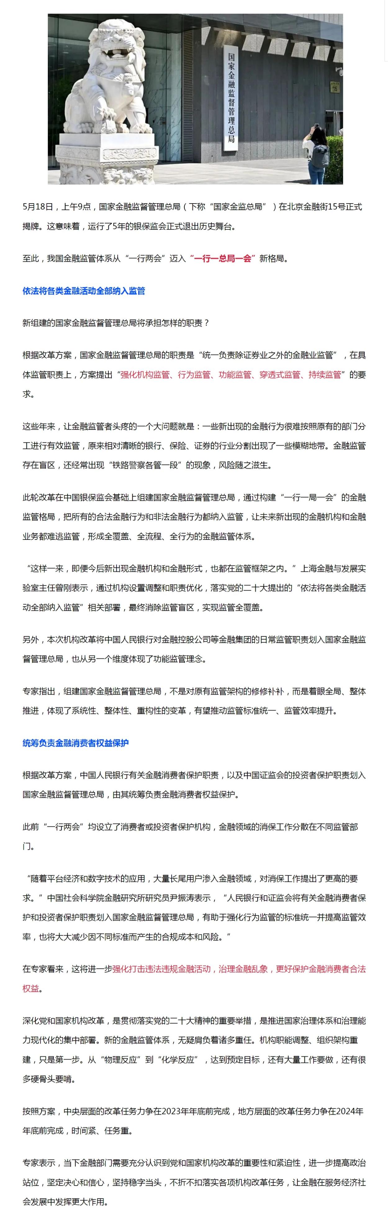国家金融监督总局正式挂牌