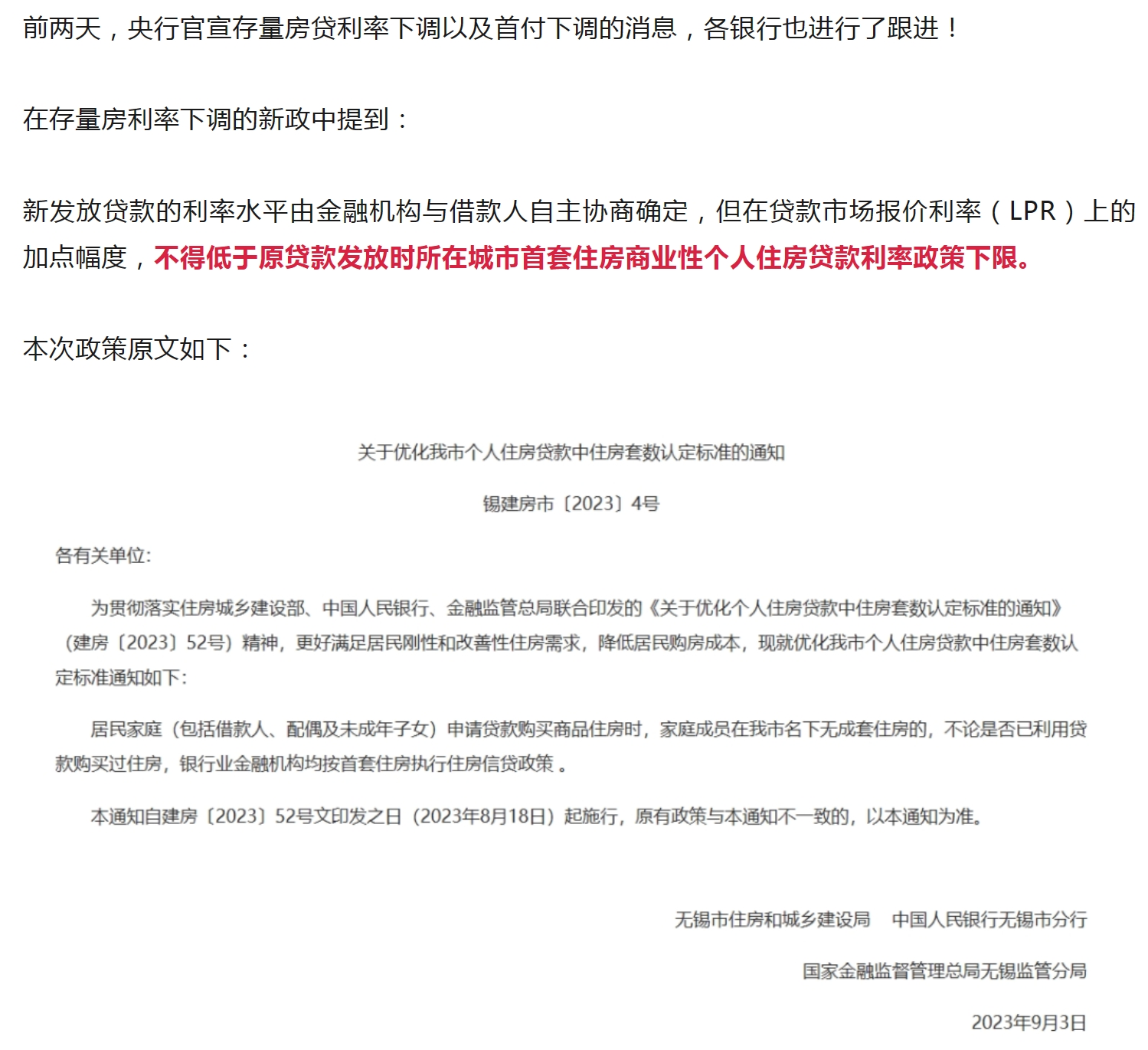 定了!无锡执行“认房不认贷”